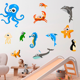 Adesivo murale bambini Kit Acquario di polpi. Dodici illustrazioni da posizionare a piacere. Questi rappresentano, in modo simpatico, diversi animali marini, come la stella e il cavalluccio marino, il granchio o la balena. La soluzione decorativa per i più piccoli amanti del mare in casa.