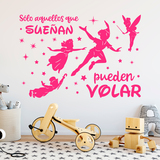 Adesivo murale Solo chi sogna può Volare. Grande adesivo per bambini che mostra la frase "Sólo aquellos que sueñan pueden volar" in spagnolo. Scelta perfetta per la camera dei bambini o per i fan di Peter Pan. Non esitare e ottieni uno dei nostri fantastici vinili al miglior prezzo.