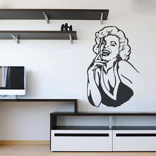 Adesivo murale Marilyn risata. Norma Jeane Baker ha iniziato a lavorare come modella e in seguito ha iniziato la sua carriera a Hollywood sotto il nome d'arte di Marilyn Monroe. Diventò una delle attrici più popolari del ventesimo secolo ed era considerata un'icona del tempo.