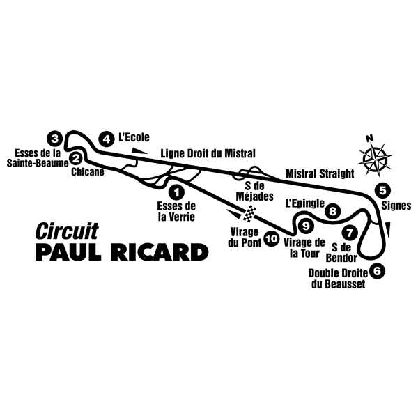 Adesivo murale Circuito Paul Ricard. Progettazione del circuito Paul Ricard situato vicino a Marsiglia in Francia. Circuito considerato uno dei più sicuri al mondo e ha un rettilineo chiamato Mistral di quasi due chilometri. Se ti piace la Formula 1 ti piacerà questa collezione di circuito.