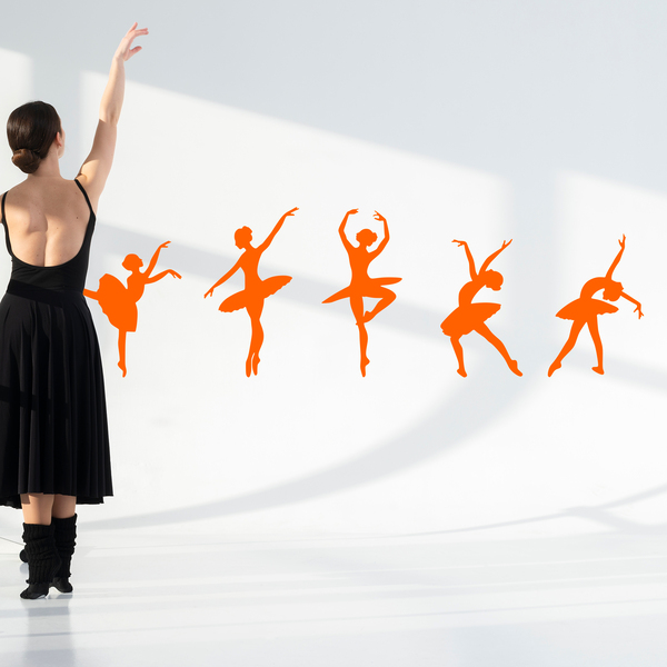 Adesivo murale Figure di balletto. Composizione di sagome di un ballerino che esegue 5 figure diverse. La parola balletto viene dal francese e significa danza classica o danza accademica. È un termine usato per la prima volta nel 1582