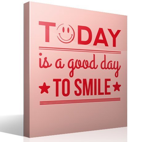 Adesivo murale Today is a good day to smile. Disegnare con il testo in inglese con un messaggio chiaro e una frase motivante che integra il famoso volto giallo sorridente, creato dal designer, Harvey Ball, si dice che gli ci sono voluti una decina di minuti per farlo, così ha fatto pagare solo 45 dollari.