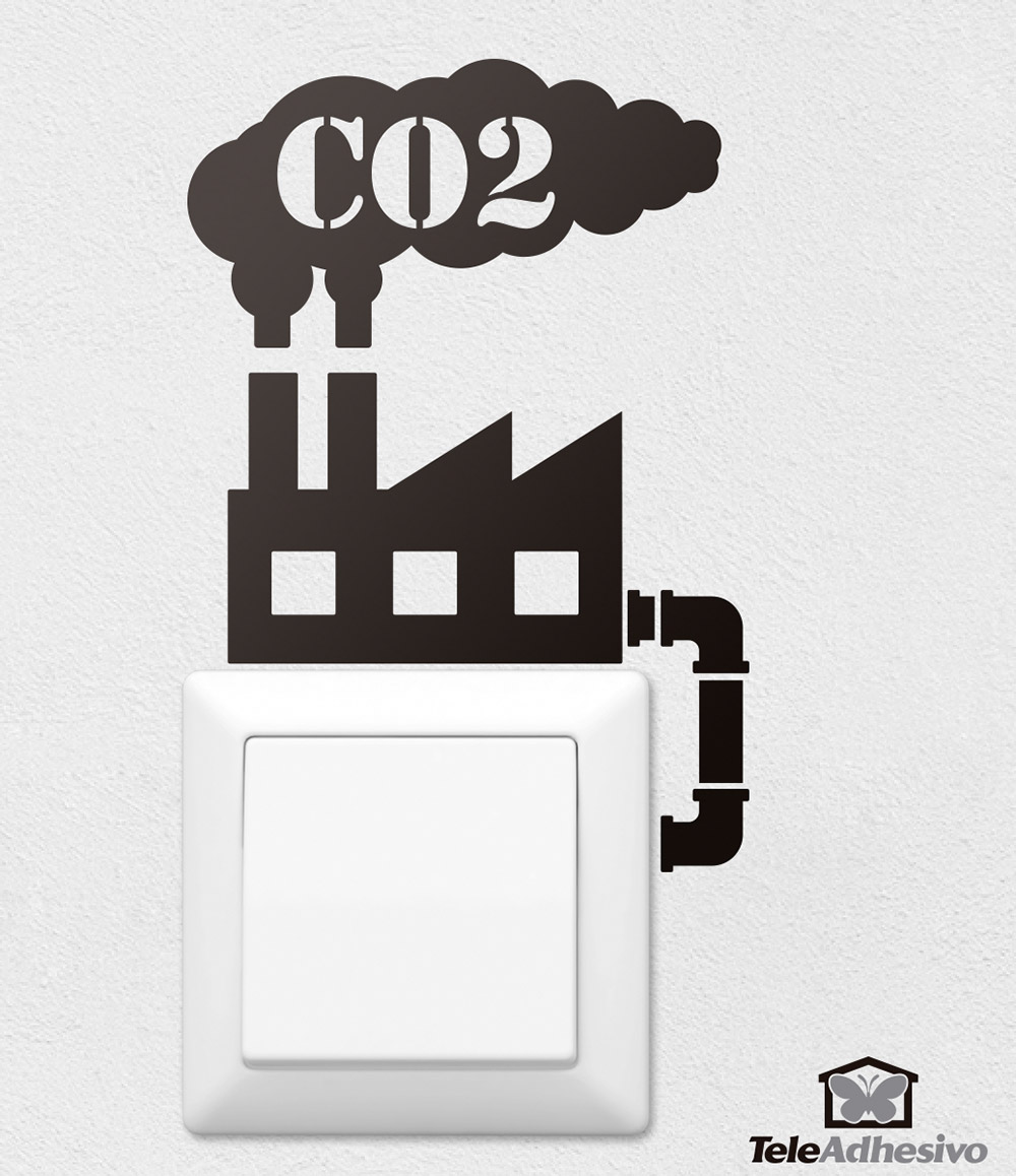Adesivo murale per interruttori o prese Fabbrica CO2. Un design che ci incoraggia a prendere coscienza dell'inquinamento e ci ricorda di spegnere la luce. L'anidride carbonica è considerata un inquinante quando è associata ad automobili, aerei, centrali elettriche, all'uso di benzina o gas naturale.