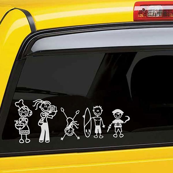 Adesivo famiglia per auto Mamma di giardinaggio. Composizione di una madre di famiglia che innaffia il suo giardino. Appare vestito in un paese con la annaffiatoio che innaffia uno dei vasi con i fiori. Combinalo con altri adesivi di famiglia e rappresenti la tua famiglia con questi disegni nella tua auto