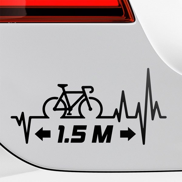 Adesivo Cardiogramma Bicicletta Distanza 1.5m. Design ideale in cui indica la distanza minima da lasciare quando si sorpassa una bicicletta. Metti questo vinile sul tuo veicolo per ricordare agli altri conducenti questa importante regola stradale, che mira a garantire la sicurezza dei ciclisti.
