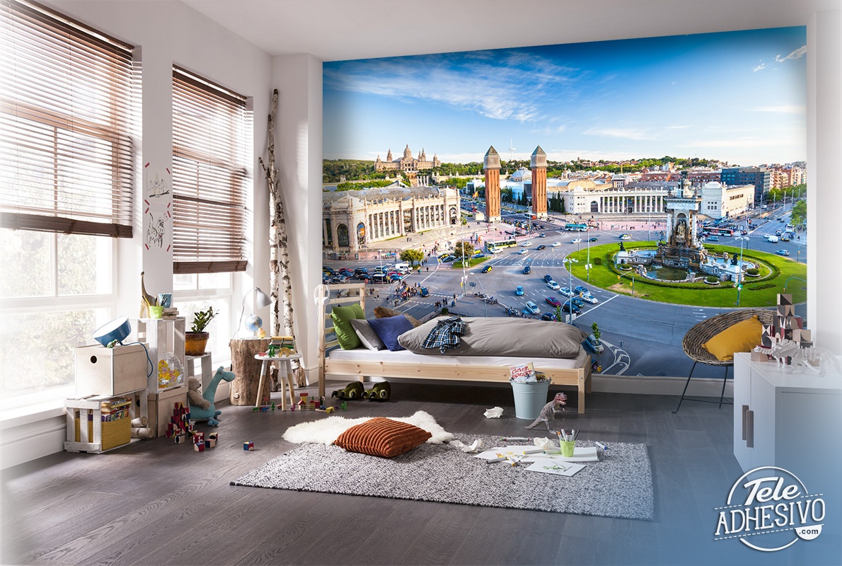 Fotomurale Panoramica di Barcellona. Aprire la finestra in formato panoramico di una splendida vista di Barcellona con il mare sullo sfondo. È la seconda città più popolata della Spagna dopo Madrid e l'undicesima nell'Unione europea. La città dell'arte e l'aria bohémien trasformeranno.