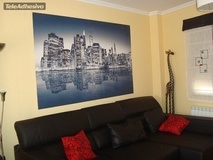 Fotomurale Manhattan blu. Magnifica Skyline e il suo riflesso nell'acqua nei toni del blu della baia di Manhattan. Manhattan è uno dei 5 distretti che formano New York ed è un'isola situata alla foce del fiume Hudson a nord del porto. L'isola è divisa in 3 zone: Downtown, Midtown e Uptown.