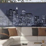 Fotomurale Panoramica di Manhattan durante la notte. Immagine di alta qualità di New York di notte in formato super panoramico che copre una grande quantità di grattacieli e altri edifici della più popolosa città americana del paese e sulla destra è possibile vedere il mitico ponte di Brooklyn.