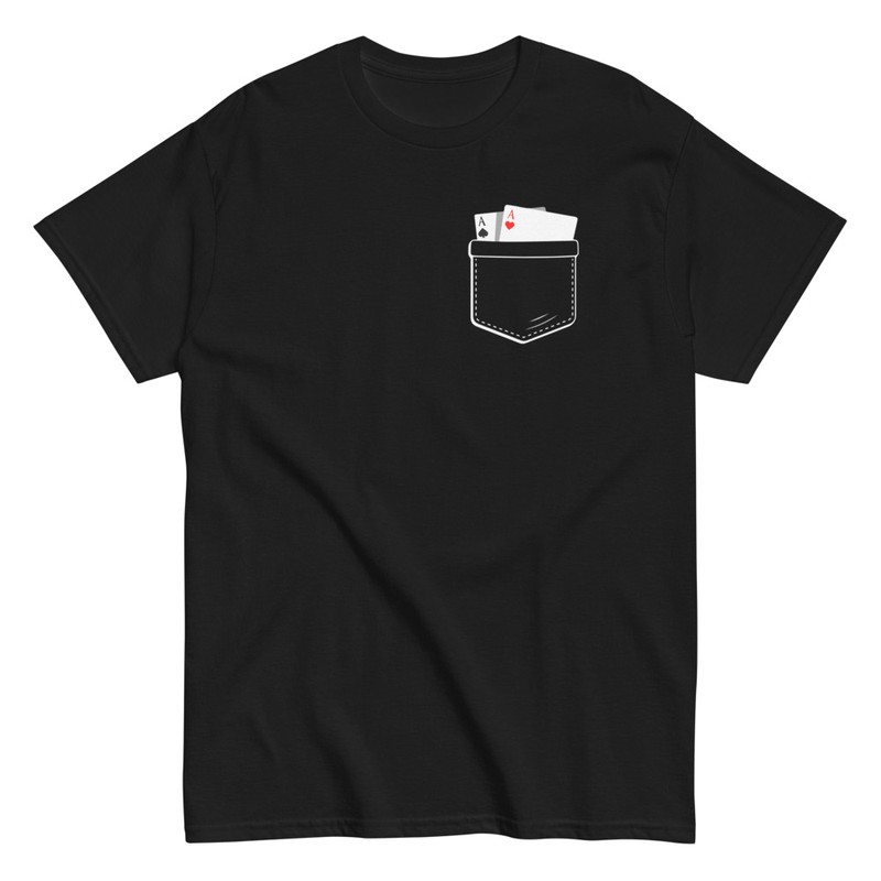 Questa maglietta poker è perfetta per gli appassionati del gioco. Con un design ingegnoso che mostra una coppia di assi nel taschino, trasmette mistero ed eleganza. Che sia per la Festa del Papà, un compleanno o qualsiasi occasione speciale, questa maglietta è un regalo ideale per chi ama il poker. Realizzata in 100% cotone per garantire comfort e stile per tutto il giorno. Porta sempre con te le tue carte vincenti!